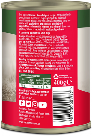 High in real meat, our canned food meals for dogs are filled with quality ingredients, then gently cooked to ensure all the Natures Menu goodness are locked in. A great alternative to raw feeding when travelling or staying away.