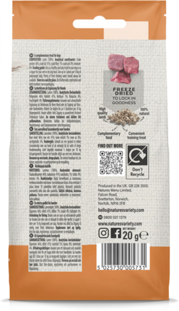 What’s more, you can keep Nature’s Variety Freeze Dried Bites in the cupboard or in your pocket for walkies. No refrigeration required and they can be enjoyed straight from the pack.