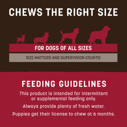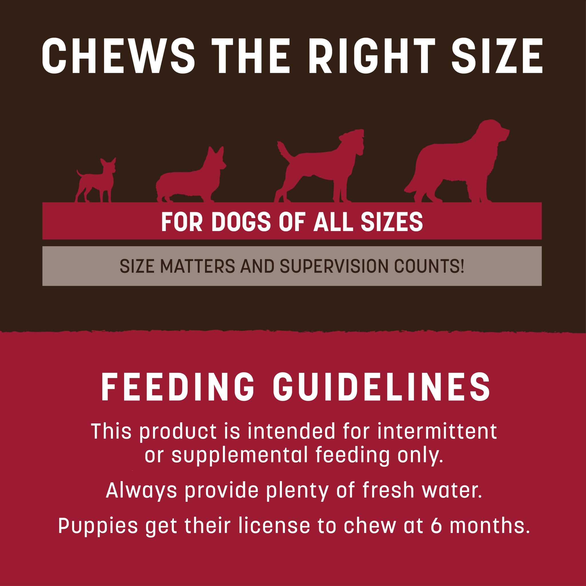 These chews offer a wholesome and delicious alternative to rawhide, plus they are tummy-friendly and shard-free. Made with just six high-quality ingredients, including one protein source, these chews are chemical-free, hand-rolled, carefully cooked and dried for easy digestion.
