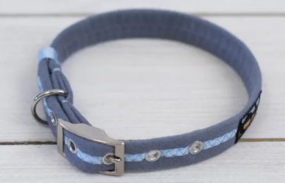 Our signature range dog collars are made of an ultra- soft suedette. Available in thirteen colours to suit all tastes.  Fully machine washable and set off with stylish nickel plated hardware. The suedette fabric is stitched over ultra-strong nylon webbing.