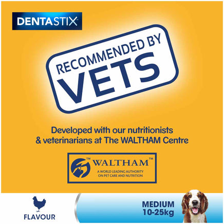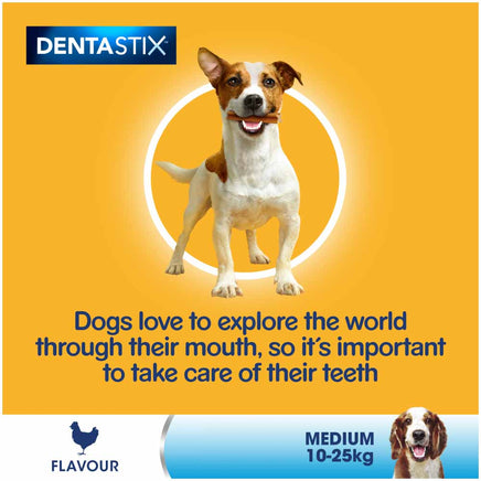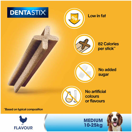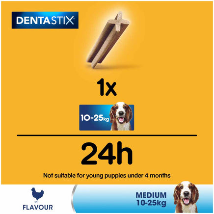 Dogs love to explore the world through their mouth, so it is important to take care of their teeth. Pedigree Dentastix Daily Oral Care chews with Triple Action are scientifically proven to reduce the build-up of tartar by up to 80%, clean hard to reach teeth and support gum health. Dentastix dental treats for dogs are low in fat, with no added sugar and free from artificial colours and flavours, a healthy dog treats with benefits. Pedigree daily dog chews provide effective oral care for medium dogs. The pack contains five sticks.