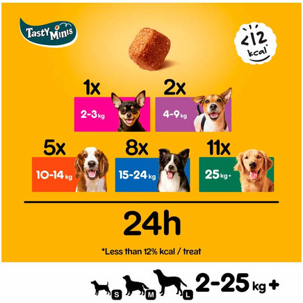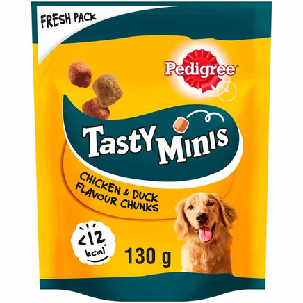 Make your canine companion's training activities an enjoyable experience with this Pedigree tasty bites. These dog treats come in chicken chewy cubes in a 130g pack. These tantalisingly tasty bite-sized dog treats are great for big and small dogs. These complimentary dog biscuits have been developed into a varied range of tasty shapes, sizes and textures by nutritionists and vets at The Waltham Centre. They contain Omega 3 to help keep them fit for life, vitamins to help their natural defences and minerals like calcium to help give them strong bones. These delicious small bite dog treats contain no artificial colours or flavours.