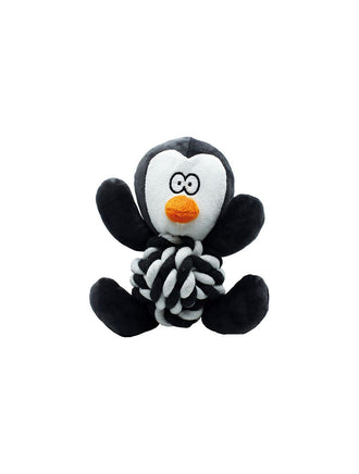 #Happy Pet Penguin Knottie toy, combines soft plush with a durable knotted tummy. The penguin head features an internal squeaker and the knotted tummy helps provide daily dental care, cleaning teeth through play.