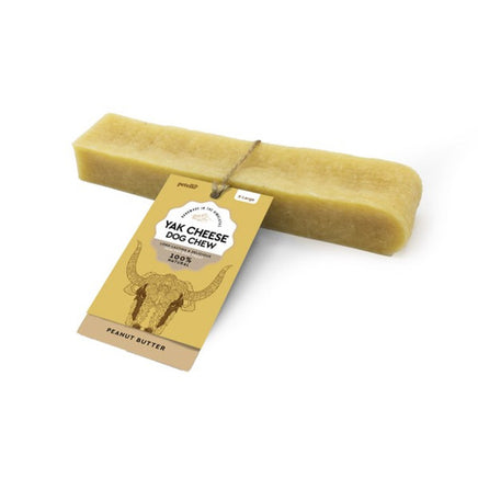 Petello Yak Cheese with Peanut Butter Dog Chews - A natural, gluten-free, and calcium-rich delight for your furry friend. Crafted from human-grade ingredients, including rare Himalayan yak cheese and a touch of coconut for added benefits like improved digestion and a strengthened immune system. These long-lasting chews are air-dried and smoked to perfection, free from artificial additives, and perfect for maintaining oral health. With only four wholesome ingredients: Yak and Cow's Milk, Salt, Lime Juice, and Peanut Butter. Treat your dog to these delectable rewards as part of a balanced diet, always with fresh water nearby, and under supervision to ensure safe chewing.