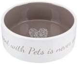 Time spent with pets is never wasted.” If you agree with this expression, the Trixie Pet’s Home Bowl is the right one for you and your dog. This ceramic bowl offers an attractive design with complementary colours. The outside is decorated with the motif, “Time spent with pets is never wasted” and you will find a cute heart made up of paws on the inside. This dog bowl is heavyweight which makes it very stable. The high rim prevents food or water for going all over the place. This bowl is hygienic thanks to the ceramic material. Its surface is smooth and non-porous. No left-over food can go off in the corners thanks to the rounded shape. When the bowl needs a more thorough clean, simply pop it in the dishwasher. Trixie Pet’s Home Ceramic Bowl at a glance: Charming food bowl for dogs Hygienic and easy to clean: rounded shape, smooth, non-porous surface Very stable: being heavyweight makes this bowl sturdy Attractive design: complementary colours, cute paw heart design inside, motif “Time spent with pets is never wasted” on the outside High rim: ensures that less food and water get spilt Material: ceramic Measurements: 12 cm diameter or 16 cm diameter Volume: 300 ml or 800 ml Colour: white/taupe Care instructions: dishwasher-safe