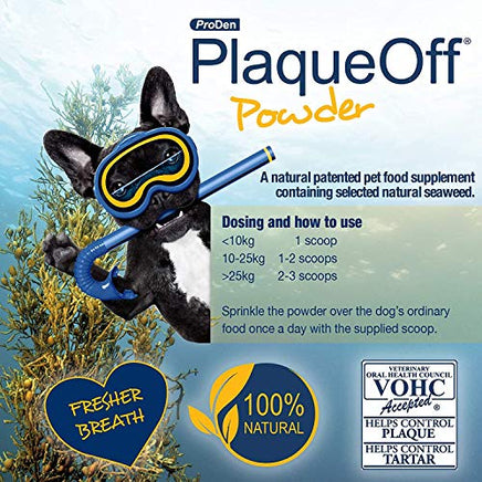 A 100% all natural product, ProDen PlaqueOff® Powder is free from artificial colours and preservatives and contains no gluten or sugar.