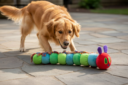 Meet your pup's new best friend—The Very Hungry Caterpillar™ plush toy! Inspired by Eric Carle's beloved classic, this vibrant companion combines soft cuddles with interactive play. Packed with squeakers and crinkle paper, it delivers multi-sensory entertainment that keeps dogs engaged and entertained. The eye-catching, colourful design appeals to both pets and their owners, making it an ideal choice for dogs who love texture, sound, and imaginative play. Perfect for fetch, snuggle sessions, or solo adventures—this charming plush toy brings literary magic to playtime.