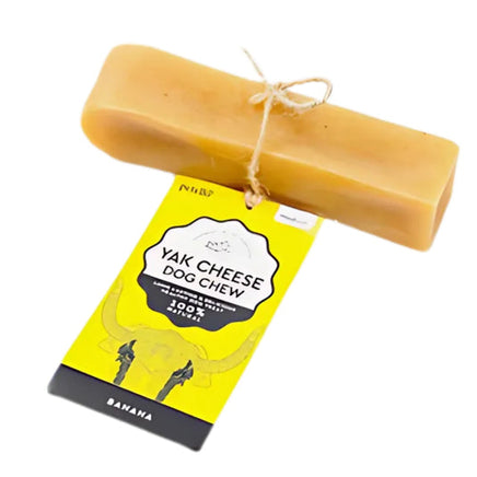 A tough, natural chew with a tropical twist. The Petello Yak Banana Chew is made from traditional Himalayan yak and cow’s milk, with added banana for extra flavour and natural sweetness. It’s long-lasting, low in fat, and totally free from rawhide or artificial junk.