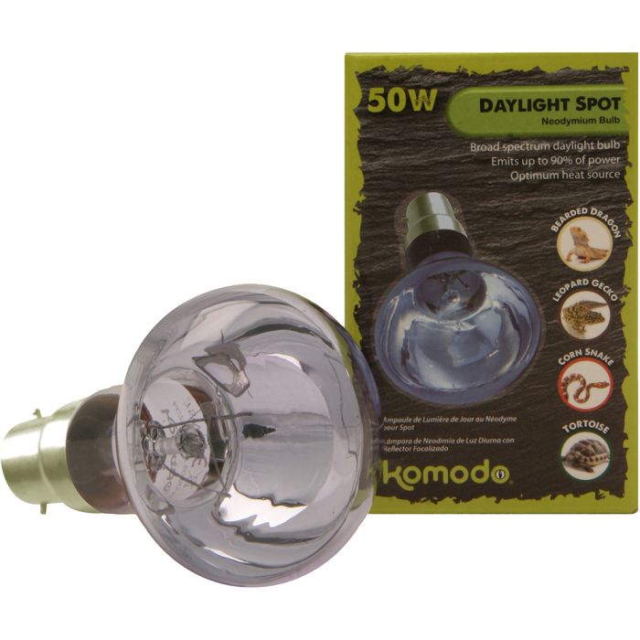 When neodymium is present in the glass of a spot bulb it filters out yellow light produced by normal spot bulbs, this then creates a whiter light that is more natural in appearance. Neodymium filtered light can also enhance the appearance of greens and reds within an enclosure.