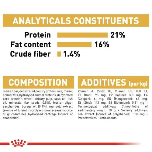 Exclusive kibble design: dental healthThis formula helps reduce the risk of tartar formation thanks to calcium chelators.