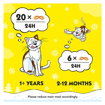 Feeding Instructions: For adult cats, feed up to 20 pieces per day. For kittens, feed up to 6 pieces per day. Please reduce the main meal accordingly. Fresh drinking water should always be available.
