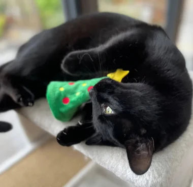 The KONG Holiday Cat Crackles Christmas Tree sparks your cat’s natural hunting instincts with its crinkling sounds and interactive design. The crackle ball is tethered to the tree by an elastic cord for exciting tug-and-release play, while KONG’s Premium Catnip adds extra festive fun for prolonged indoor entertainment.