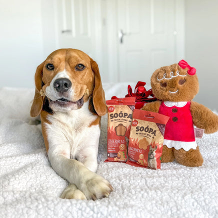 Pawsitively Festive! Our Gingerbread treats are the perfect winter snack for your pup! Baked with soothing ginger and nourishing cranberries they aid digestion, reduce inflammation, help soothe upset tummies and boost urinary tract health. Full of cosy, festive flavour, these treats are a holiday must-have for your furry friend!