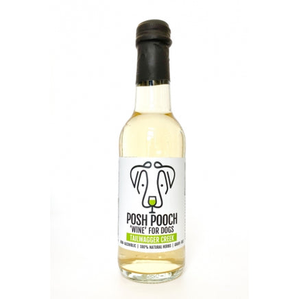 Posh Pooch wine for Dogs, Tail Wagger Creek white 'wine' is a specialised Natural blend of Elderflower, Nettle, Ginseng and Lime flower, created with the advice of veterinary experts. No Grapes, Non- Alcoholic & 100% Natural Herbs.