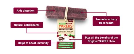 YAKERS, keeping dogs occupied for longer. Made to an ancient Himalayan recipe, perfected over hundreds of years from our 100% natural ingredient, yak milk. We also add our superfood cranberry blend, cow’s milk, lime juice and a pinch of salt before smoke drying for 28 days.