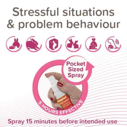 Ideal for everyday use, during events such as fireworks or parties, and is especially useful in carry boxes during stressful travel or trips to the vet or pet holidays. Each application lasts for up to five hours.