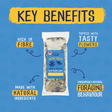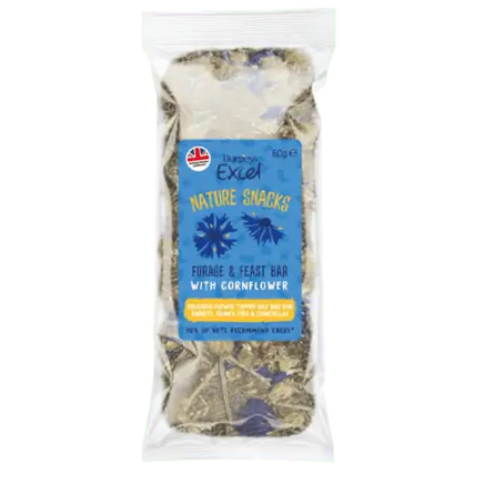 Excel Forage & Feast Hay Bar with Cornflower is a delicious flower topped hay bar for rabbits, guinea pigs and chinchillas.