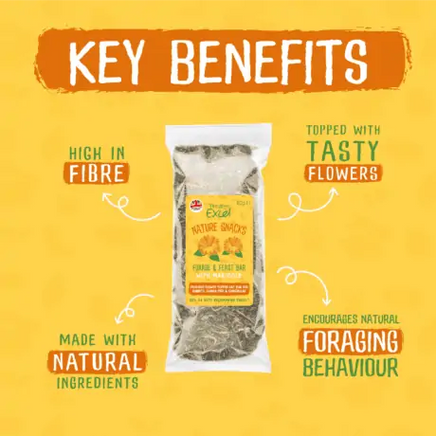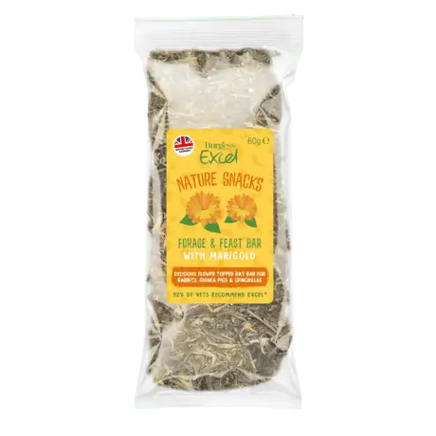 Excel Forage & Feast Hay Bar with Marigold is a delicious flower topped hay bar for rabbits, guinea pigs and chinchillas.