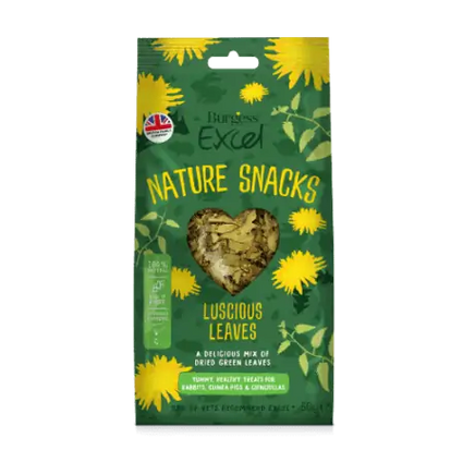 Excel Luscious Leaves are a delicious and healthy treat for rabbits, guinea pigs and chinchillas and are ideal for sprinkling on hay to encourage natural foraging behaviour.