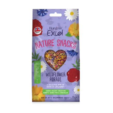 Lovingly made, our delicious mix of wildflowers is irresistible to rabbits, guinea pigs & chinchillas and is naturally healthy too. Made with a tempting mix of rose, hibiscus, marigold & cornflower, Burgess Excel Wildflower Forage is a complementary feed for rabbits, guinea pigs and chinchillas.