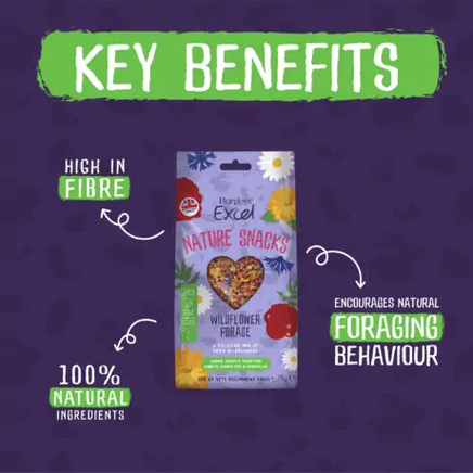 Excel Wildflower Forage is a tasty and healthy treat for rabbits, guinea pigs and chinchillas and is ideal for sprinkling in hay and encouraging natural foraging behaviour.