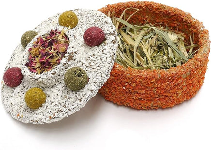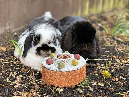 Our guilt-free cake doesn't have any dairy or added sugar, just 100% natural ingredients. The edible, cellulose fibre walls and lid are dressed in scrummy carrot and coconut, topped with herb 'n' veg balls and flower petals: all hiding a wonderful herbal salad mix filling pets will love to nibble and forage. Birthdays, Christmas or `just because', whatever the reason, your pet will know you care with our wonderful cake! Ideal for Rabbits, Guinea Pigs, Hamsters, Rats, Gerbils, Mice and Chinchilla