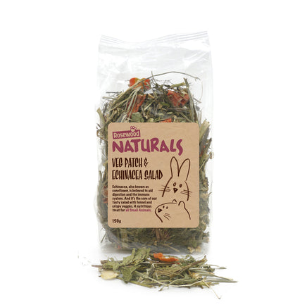 The Rosewood Naturals Veg Patch & Echinacea Salad is a nutritious treat for small animals that's packed with echinacea (also known as coneflower), believed to aid digestion and the immune system.