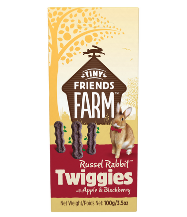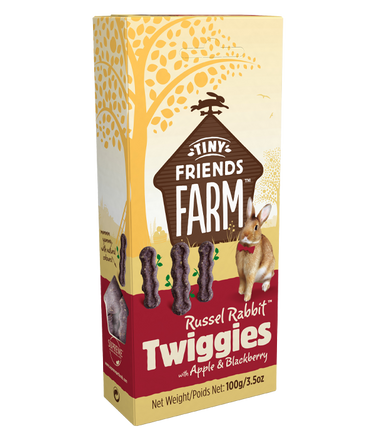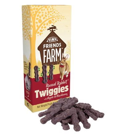 Russel Rabbit Twiggies with Apple & Blackberry are tasty baked treats fresh from our bakery, made with the wholesome goodness of natural grains and tasty fruits. Russel Rabbit Twiggies are perfect when you want to give your pet a tasty treat. They can be carefully hand-fed to your pets, helping you to build those special moments together. One or two can also be hidden around your pet’s enclosure to encourage natural foraging. And remember to give your rabbits lots of fresh hay daily and unlimited access to water. Russel Rabbit Twiggies are also suitable for guinea pigs, chinchillas, hamsters, gerbils, mice, and rats.