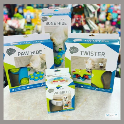 IQ toys provide fun physical and mental stimulation for your pet. Using challenging IQ toys exercise your dog's mind; reducing boredom and teaching problem solving skills. Redirecting potential destructive behaviour into a positive outlet.