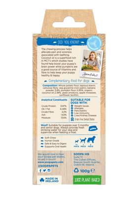 Combining the brilliant immune-boosting benefits of pumpkin with the soft and flavoursome taste of banana, these superfood sticks really will be your pups favourite treat. Loaded with vital vitamins and minerals to support your pup’s natural growth and development, not only are these dental sticks nutritionally beneficial but they are Soopa tasty too. Just simply cut in half and give your brand new puppy a tooth clean that is as easy as pumpkin pie.