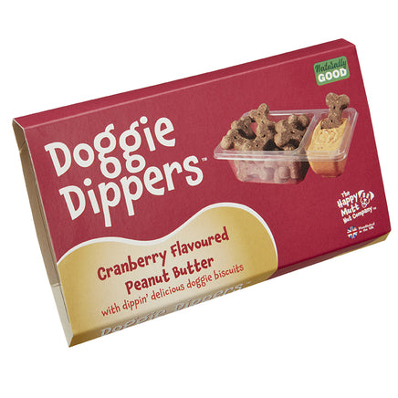 Our Doggie Dippers™ are a world-first interactive dog treat. Blending gluten and wheat free Carob and Coconut biscuits with our Cranberry flavoured peanut butter to form a delicious treat that you don’t just give to your dog, but share the experience with them.