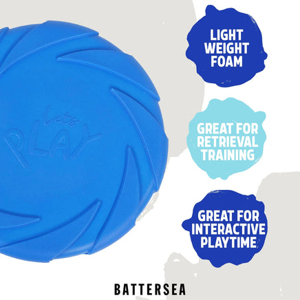retrieval training. The Foam Frisbee is made from durable, yet soft lightweight foam so all dogs can comfortably fetch and retrieve. Great for interactive fun helping to strengthen the bond between dog and owner. Suitable for all dogs.